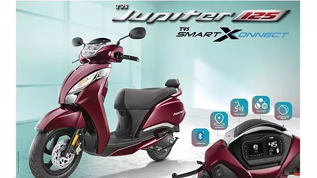The Jupiter 125 SmartXonnect remains consistent with other variants. It is powered by a 124.8cc engine paired with a CVT transmission system, producing 8.04bhp and 10.5Nm of torque. The scooter weighs 108kg and rides on 12-inch alloy wheels (steel wheels are available as an option).